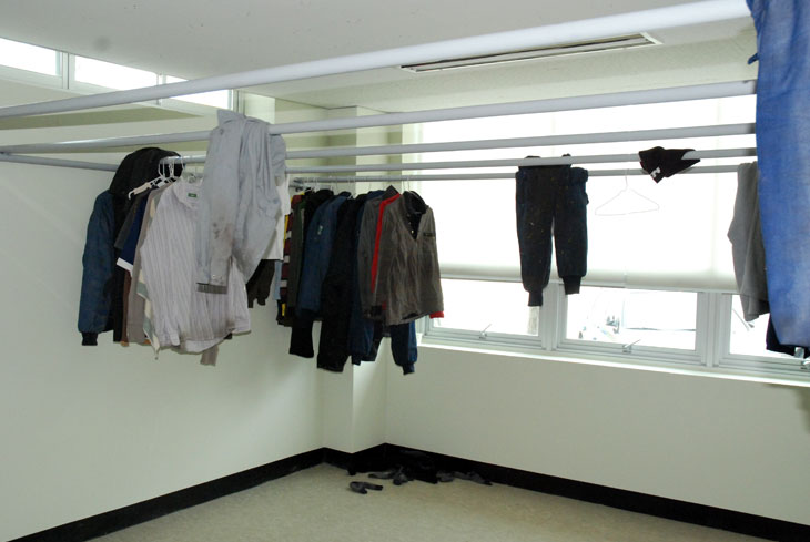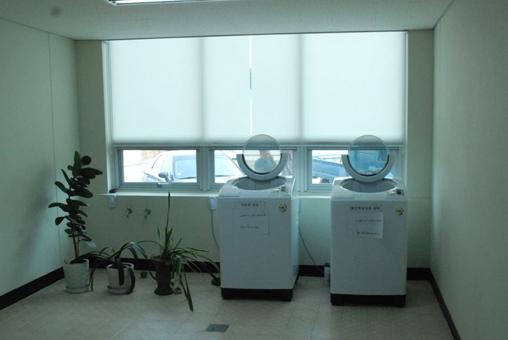 为了每天能穿着干净的工作服、삼화웨이트准备了洗衣室及晾衣台。